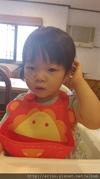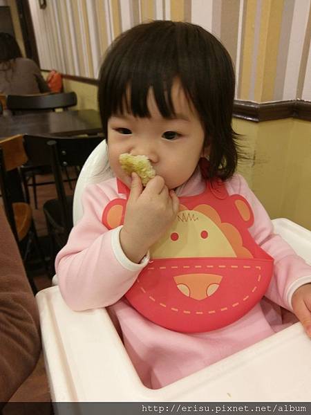 已經可以開始自己吃飯的羊妞,常常帶這個圍兜兜一起跟把鼻媽咪征戰各式美食。