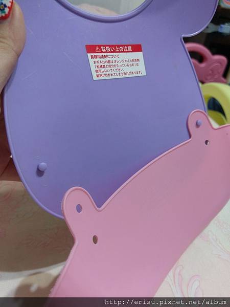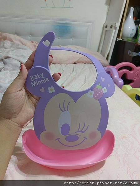 不過收到實品發現,米妮圍兜兜不能凹,也不能折,只適合在家使用。