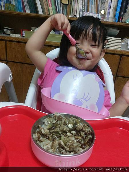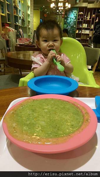 不過當小羊妞,開始學習自己拿湯匙,以及吃有顆粒狀的副食品時,