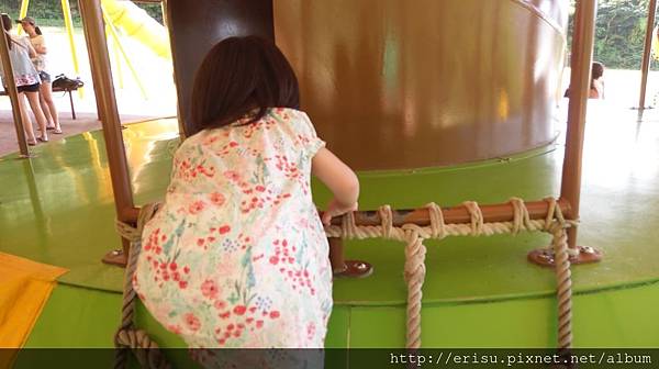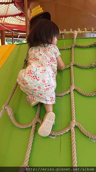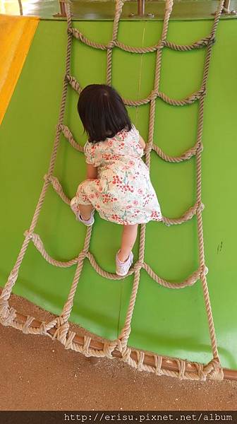 第一次爬這樣的網繩,小羊妞呆了一下,