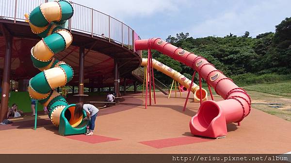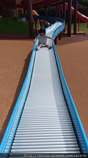 溜滑梯很特別,是滾輪式的,和台灣常見的不一樣。