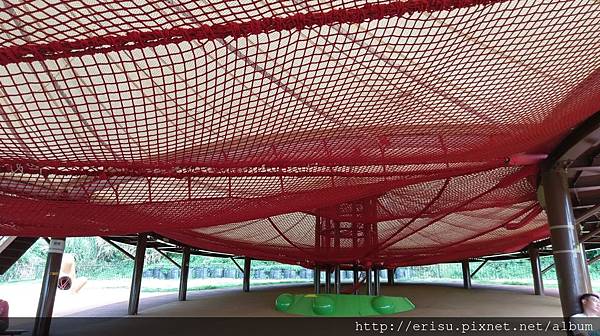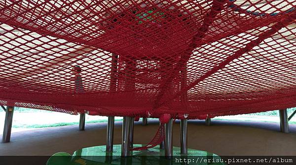 紅色攀爬網,小朋友可以開心在裡面奔跑。