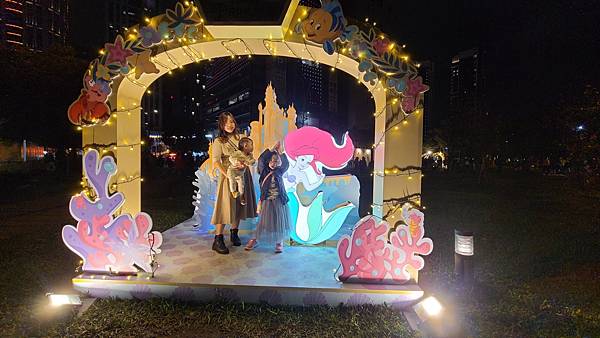 這區是「迪士尼公主的童話森林」,共有六個迪士尼公主迎接大家,小羊妞第一個就跟她愛的小美人魚拍照。